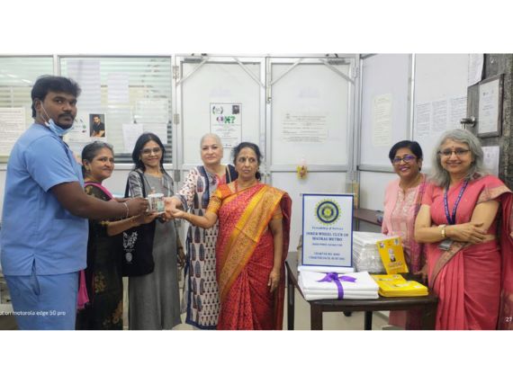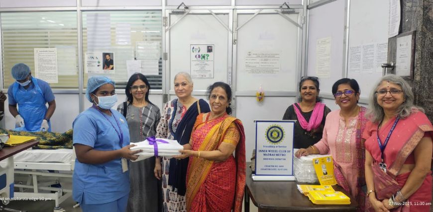 The Inner Wheel Club of Madras Metro distributed bedsheets with pillow covers at the Valluvarkottam dialysis unit of TANKER Foundation Thursday, November 27, 2025.