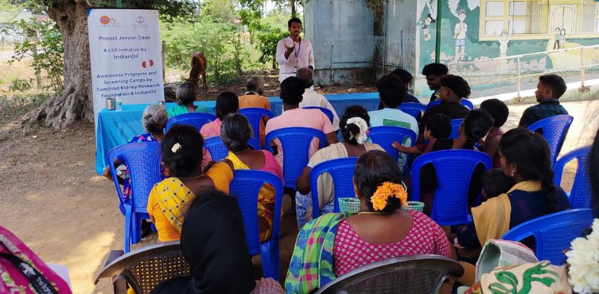 The TANKER Awareness and Prevention Program (TAPP) team of TANKER Foundation conducted an awareness programme in Mellur village, in Chengalpattu district, and effectively engaged the villagers in the session that was held Saturday, May 3, 2025. Mr. Hemeshwaran gave a talk on ways to maintain kidney health.