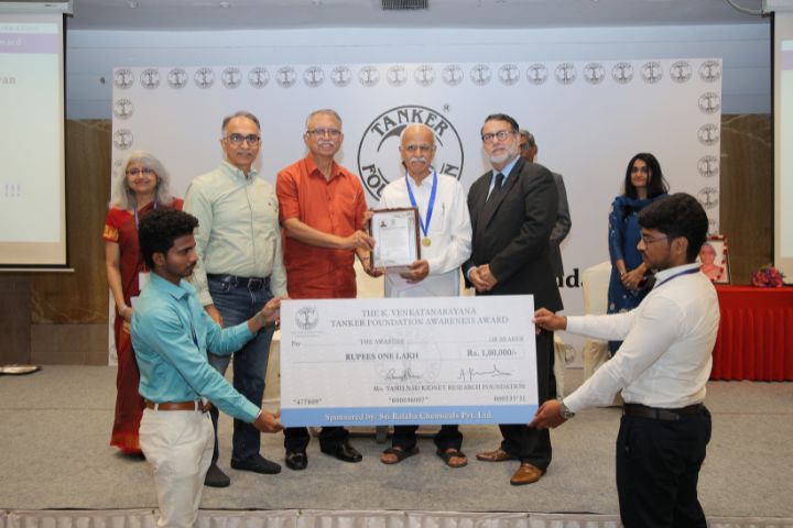 The K.Venkatanarayana TANKER Foundation Awareness Award was presented to two individuals for creating awareness of any disease, mental, physical and social Dr. VijayaBharathiRangarajanB.Sc,(Hons), MBA(Canada), BDS, of CANSTOP – “Counselling and awareness to Cancer-Affected patients, their families and friends”.The award carried a cash prize of ₹ 50,000/-, a citation and a gold medallion Mrs. Ann Gonsalvez BA. CAIIB – “Creating awareness of a debilitating illness through the Multiple Sclerosis Society of India”. The award carried a cash prize of ₹ 50,000/-, a citation and a gold medallion. The Ashok Sankaralingam TANKER Foundation Patient Endowment – One year dialysis support given for an under privileged deserving patient with kidney failure. The awardees were Mr. Rajendiran-Kilpauk Unit, Mrs. Jennifer- Ambattur Unit and Mrs.Muthayee- Madurai Unit.