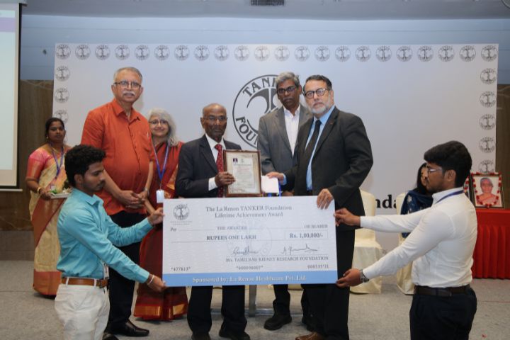 The La Renon TANKER Foundation Lifetime Achievement Award given to two individuals who have done exemplary work in the field of Nephrology was awarded to Prof. N Gopalakrishnan and Prof. M. Thomas Mathew, two renowned nephrologists from Tamilnadu and Kerala respectivelywho are pioneers of renal care in India and also served the needy selflessly. The award carried a cash prize of 1 Lakh, a citation and a gold medallion.