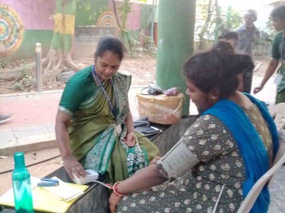 Random blood sugar testing and medical consultations were provided by the Ambattur Rotary Hospital team.