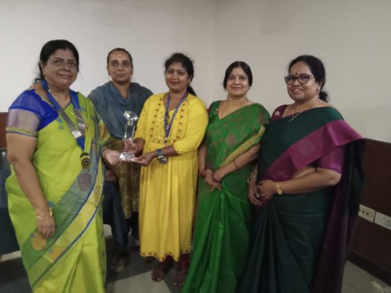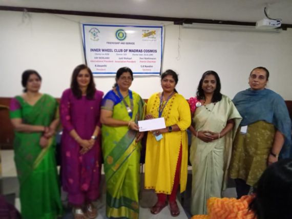 The cheque was handed over by the Present President, Mrs. Vasanthi, Immediate Past President, Mrs. Padma, and Past President, Mrs. Chandrika, during the club installation ceremony for 2025-26 in Chennai.
