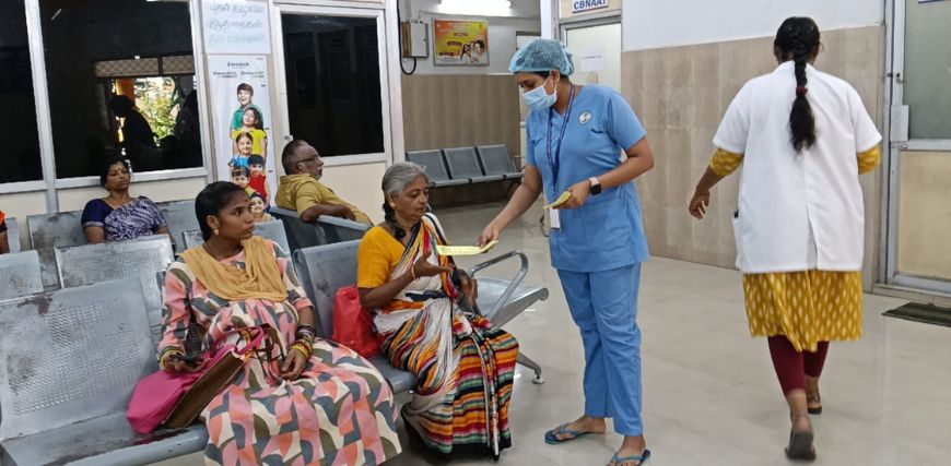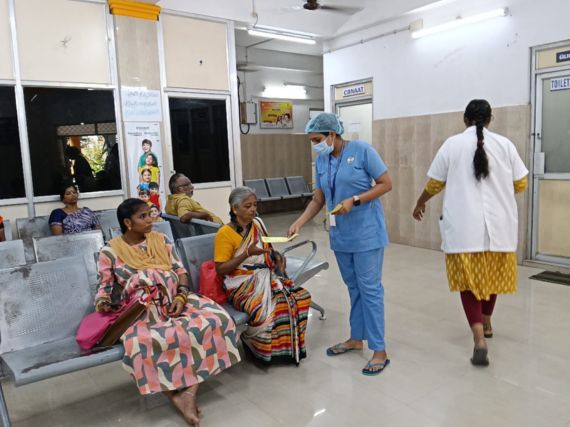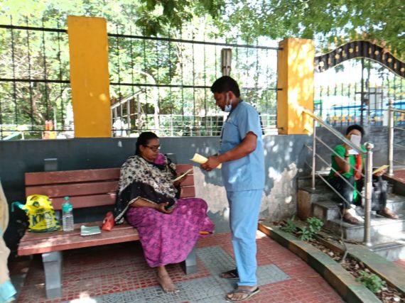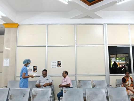 Staff members from the Valluvarkottam dialysis unit — Mr. Karthik, Ms. Somiya and Ms. Devika — actively participated in the programme and assisted with the distribution of the leaflets.