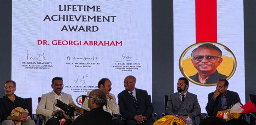 It was a moment of great pride for TANKER Foundation when its Founder Trustee, Dr. Georgi Abraham, was presented the Lifetime Achievement Award at Decon 2025 – 11th International Diabetes and Endocrine Conference.