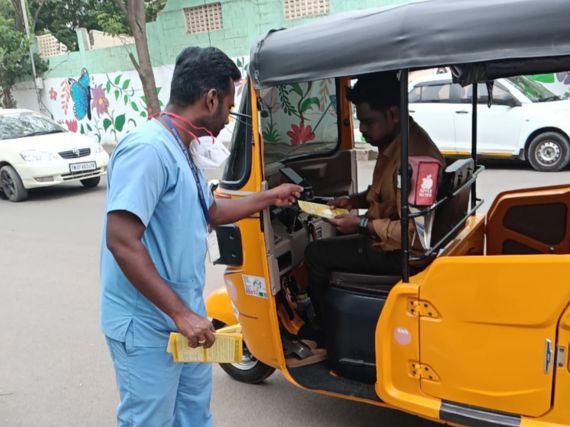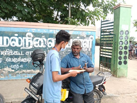 Staff from the Perungudi dialysis unit, Mr. Karthik, Ms. Indhumathi, Mr. Vasanthakumar, Mrs. Abinaya, and Miss Vandhana, actively participated in the programme and helped distribute the leaflets.