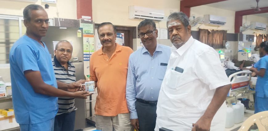 Member of the Vellore Rotary Club, Mr. Shan, accompanied by Mr. Rajendiran, Correspondent of Spring Day School, and Mr. Prasad, visited the TANKER Foundation dialysis unit at Vellore, Thursday, May 1, 2025.