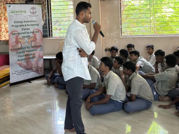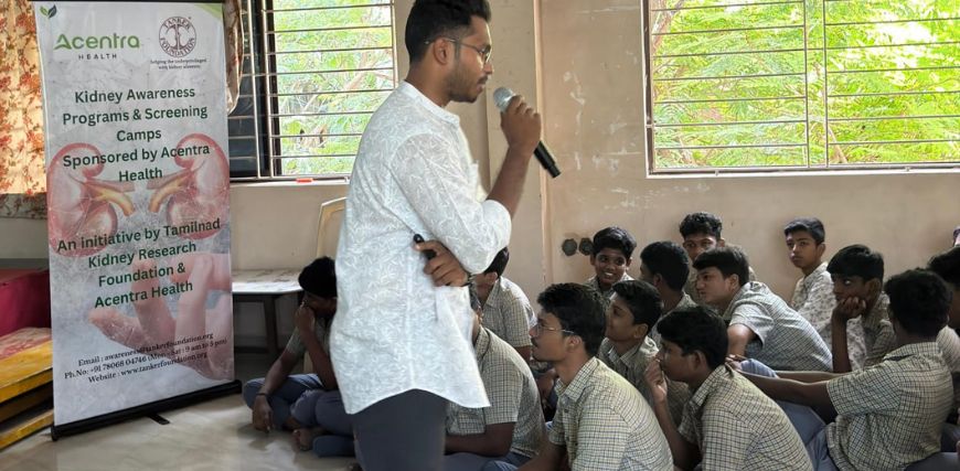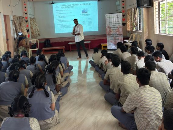 An awareness programme on kidney health was conducted by the Program Co-ordinator of TANKER Awareness and Prevention Program (TAPP) team, Mr. Hemeshwaran, of TANKER Foundation, at the Vidya Ratna PTS Matric Higher Secondary School in Adyar, Chennai, Wednesday, June 18, 2025. The 300 students and staff participated actively in the session.