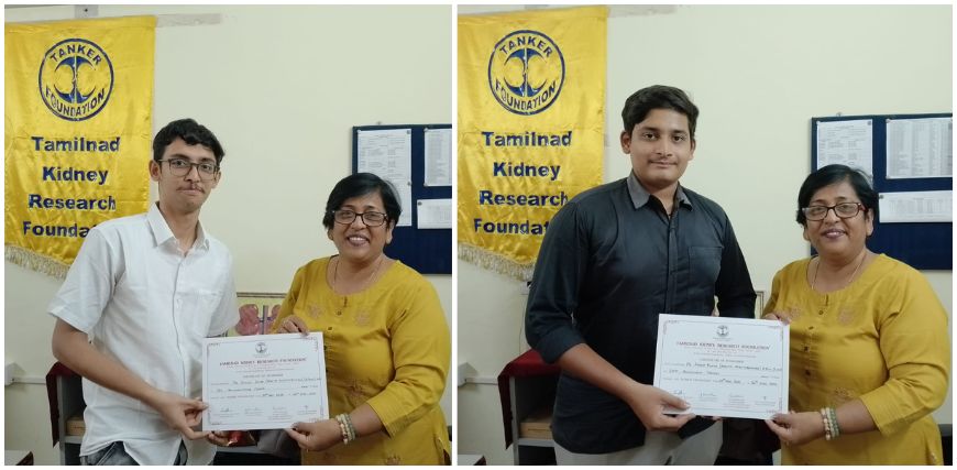 Two interns from SRM College, Mr. Sathvik Achar and Mr. Akshay Kumar, completed their internship at TANKER Foundation.