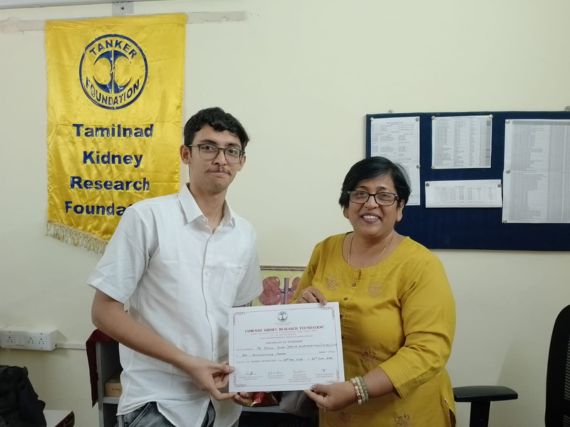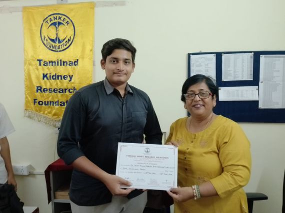 The two interns were presented their certificates by TANKER Foundation Head Admin, Mrs. Vasanthi Ravichander.