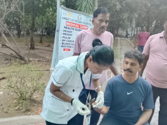 Random blood sugar testing was done and medical consultations were provided by the Ambattur Rotary Hospital team.
