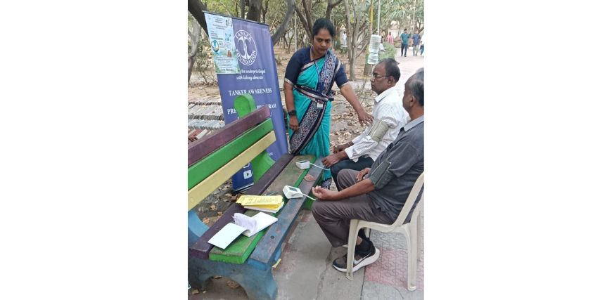 A stall programme was jointly conducted by the TANKER Awareness and Prevention Program (TAPP) team of TANKER Foundation and the Ambattur Rotary Hospital team at Dr. J.J. Nagar East Park, Mogappair, Chennai, Saturday, February 21, 2026. Apart from some regular clinical tests, the participants were provided free consultation and counselling.