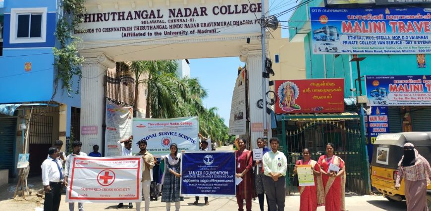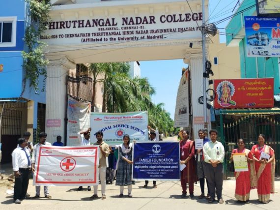 A total of 890 leaflets were distributed to the public by the students and staff of Thiruthangal Nadar College, Kodungaiyur, Chennai, during a roadshow organised by TANKER Awareness and Prevention Program (TAPP) team of TANKER Foundation, Thursday, August 21, 2025. They were ably led by TAPP team volunteers, Ms. Yamini and Ms. Satvika.
