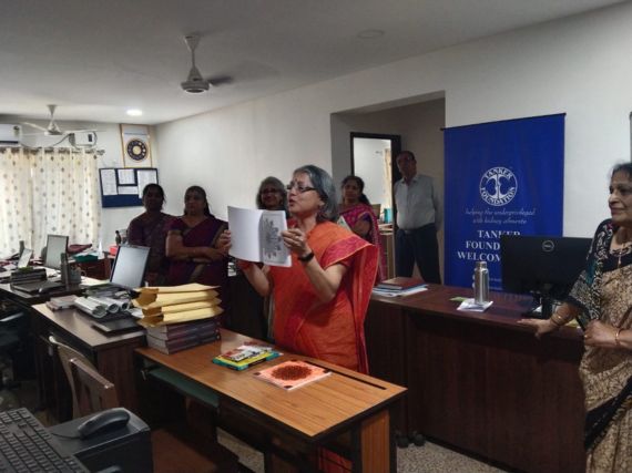Apart from generously donating two mandala books to each of the 15 dialysis units of TANKER Foundation, she packed a punch with two sketch pen packs and one colour pencil pack to each of the 15 units.
