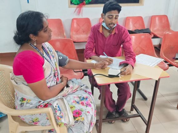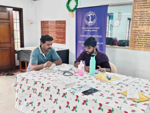 A screening camp was organised by Mrs. Mary Esther, a patient of the Ambattur dialysis unit, under the ‘Prevention Through Patient Programme’ of the TANKER Awareness and Prevention Program (TAPP) of TANKER Foundation at the Emmanuvel Methodist Matriculation Higher Secondary School, Puthur, Chennai, Tuesday, November 18, 2025. Dr. Prakash Shankar guided the TAPP team of Mrs. Ramapriya, Mrs. Deepa and Mrs. Bhuvana, and volunteer, Mr. Sathish.
