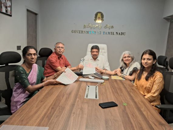 On behalf of the Madurai Corporation Commissioner and the Dean of Madurai Government Rajaji Hospital, Dr. Sreegothai Chockkalingam formally received the MoU.