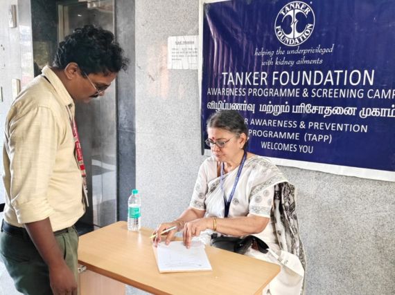 A screening camp was conducted for 112 CMDA employees on World Kidney Day, Thursday, March 12, 2026, at their office in Koyambedu, Chennai, by the TANKER Awareness and Prevention Program (TAPP) team of TANKER Foundation.