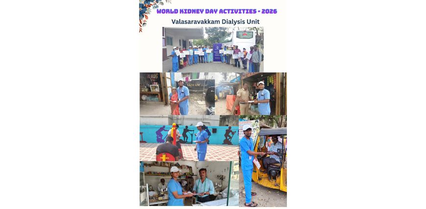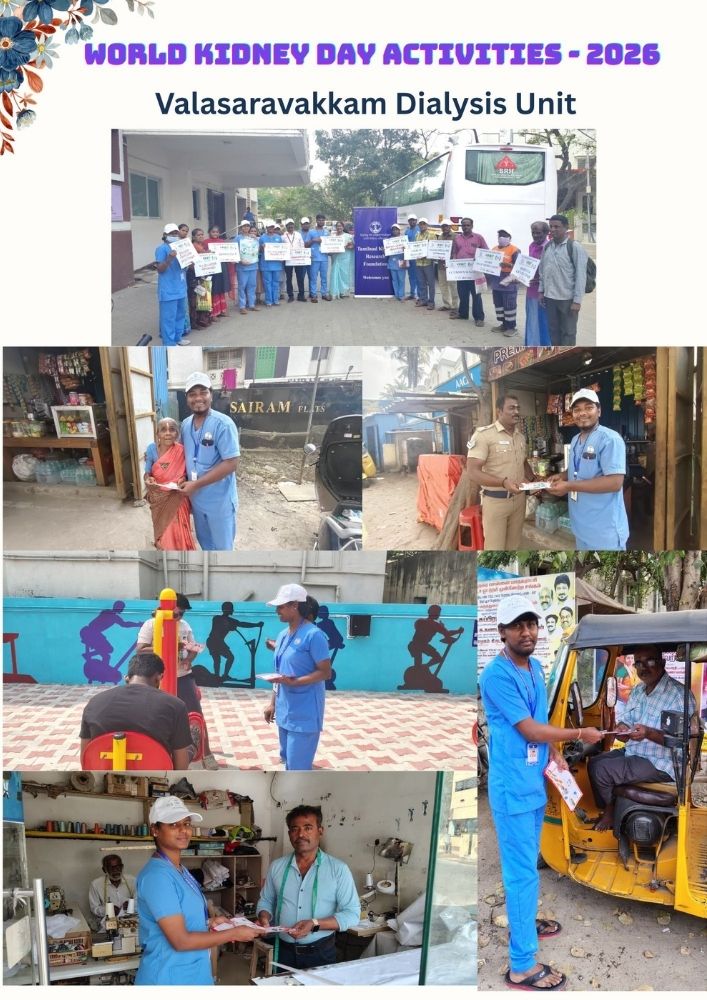 The staff of the Valasaravakkam dialysis unit of TANKER Foundation marked World Kidney Day, Thursday, March 12, 2026, by holding placards and distributing pamphlets and brochures to people.