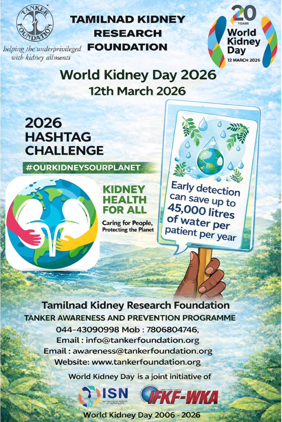 #WorldKidneyDay #SaveYourKidneysSavePlanet #KidneyHealth #KidneyCare #CKDAwareness #ChronicKidneyDisease #DialysisCare #DialysisSupport #KidneyDiseaseAwareness #PreventKidneyDisease #HealthAwareness #HealthyLiving #EarlyScreening #HealthForAll #PublicHealth #PatientCare #HealthcareSupport #TANKERFoundation #SupportHealthcare #HealthcareHeroes #ChennaiNGO #NGOIndia #HealthInitiative #CareForLife #WellnessForAll