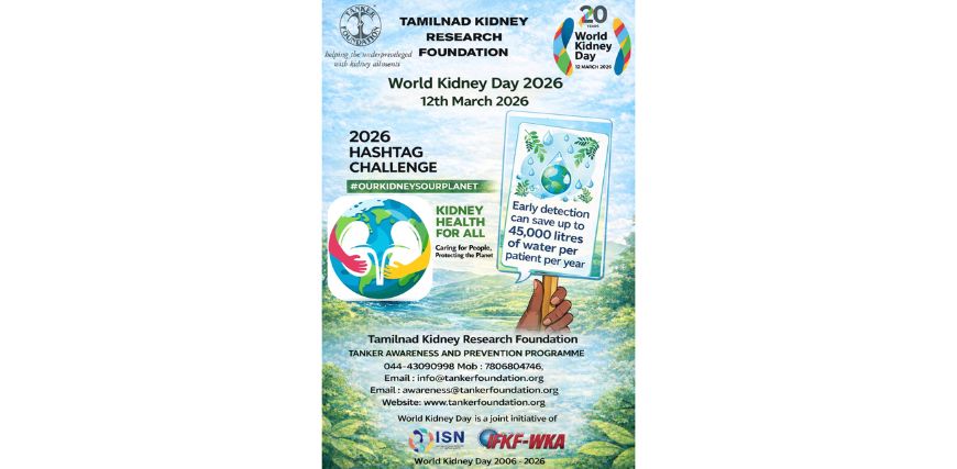 TANKER Foundation has charted out a list of activities to mark World Kidney Day 2026 that will be observed Thursday, March 12.